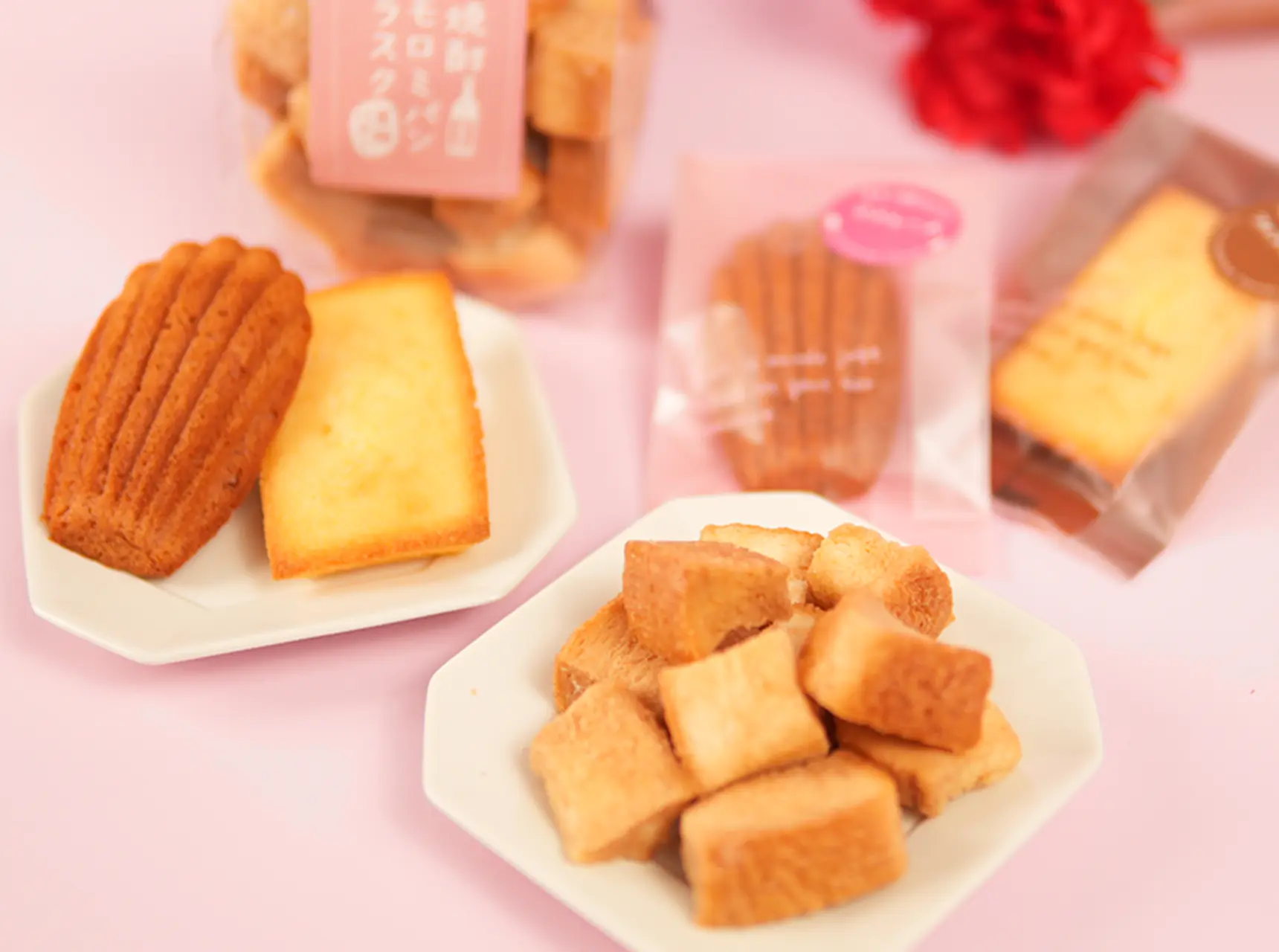 ビタミンやミネラルが豊富な「焼酎モロミ」を使用した、霧の蔵ベーカリーのオリジナル焼き菓子を3種類ご用意いたしました。紫芋の上品な甘さと焼酎モロミの香りが絶妙にマッチしたマドレーヌ。しっとりとした口溶けの良さが特長のフィナンシェ。黒糖の優しい甘さとバターの風味が豊かなラスク。霧島酒造ならではの素材で作ったこだわりの逸品です。